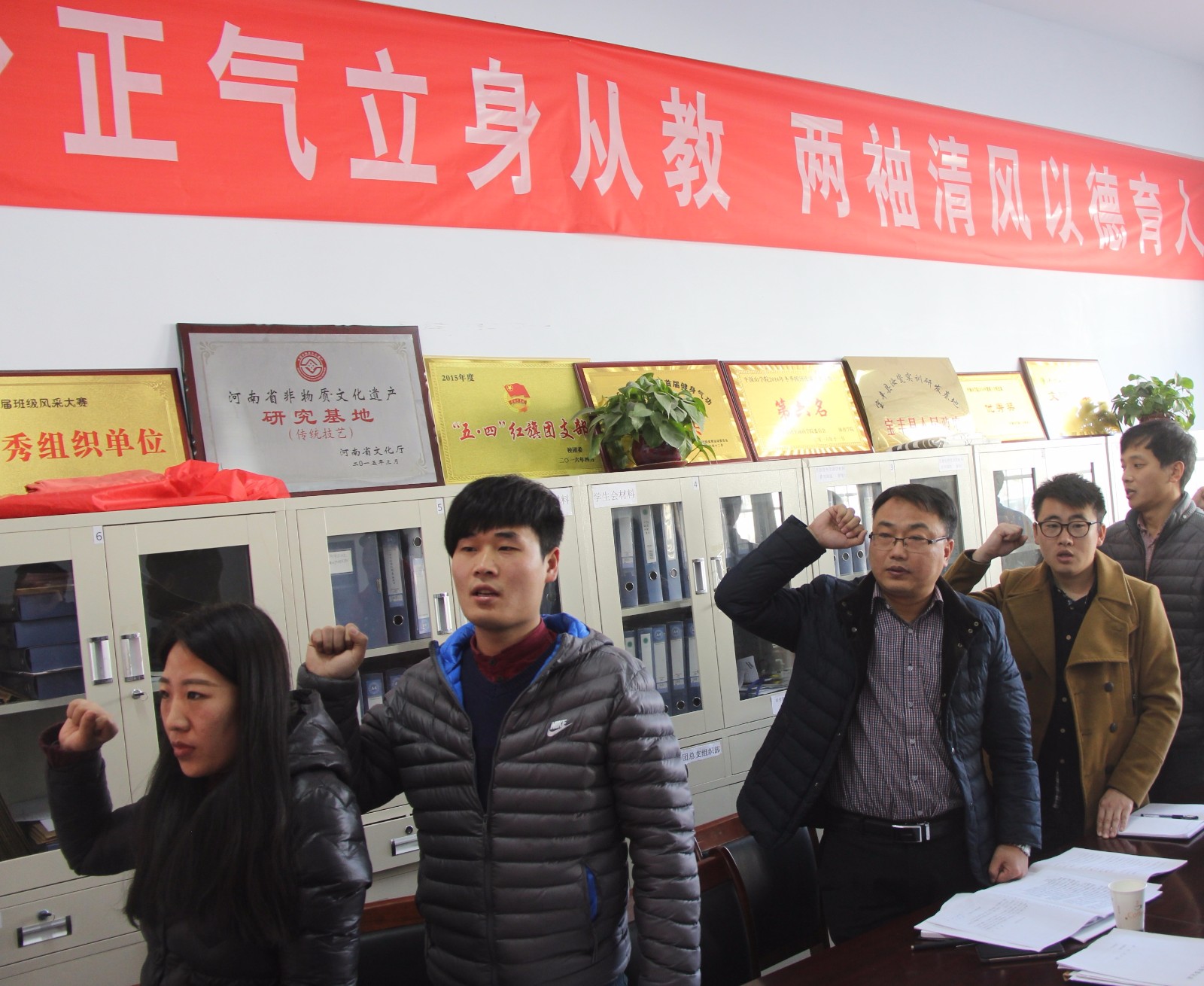 会上,五名预备党员对预备期一年内自己的思想、学习、工作、生活等情况做出了总结,并正确的认识了自己的缺点与不足,表明成为一名正式党员后,将不断地改善自身、提升自我。党小组组长向大会介绍转正人员在预备期间的教育和考察情况,党内同志认真倾听,并给予诚恳建议。大会中与会党员充分发表意见,同志们积极讨论,对转正人员逐一进行举手表决,超过半数以上的正式党员赞成接收尤传杰等五名同志的转正申请,同意转为正式党员,全体人员面对党旗宣誓,宣读入党誓词。