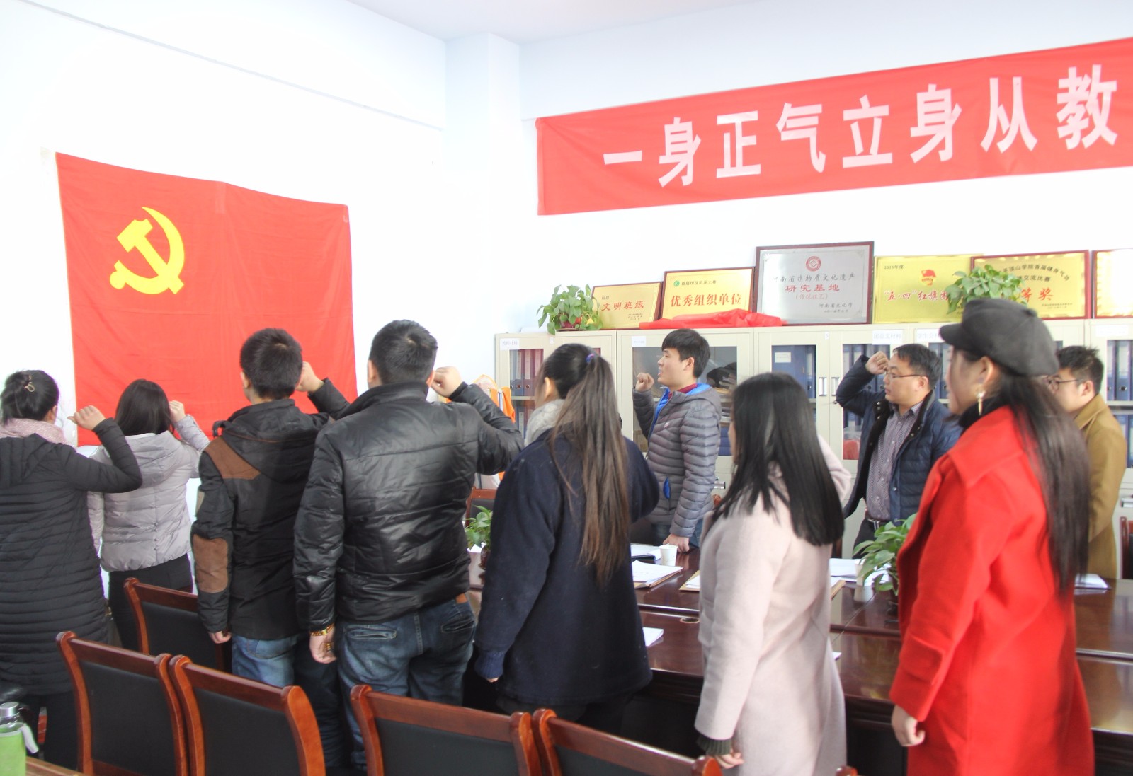 最后,太阳集团tyc151cc党总支书记吴建彪同志对本次转正同志表示祝贺并总结,一是要求同志们要加强理论知识的学习,紧跟时代步伐,关心当前时政,不断提高党性修养;二是踏入社会以后,希望党员同志们能继续严格自律,做一个有强烈社会责任感的人;三是愿新转正的学生党员能继续发扬从小事做起、从自身做起的优良作风,在广大学生中要切实体现出共产党员的先进性,要发挥模范带头的引领作用。