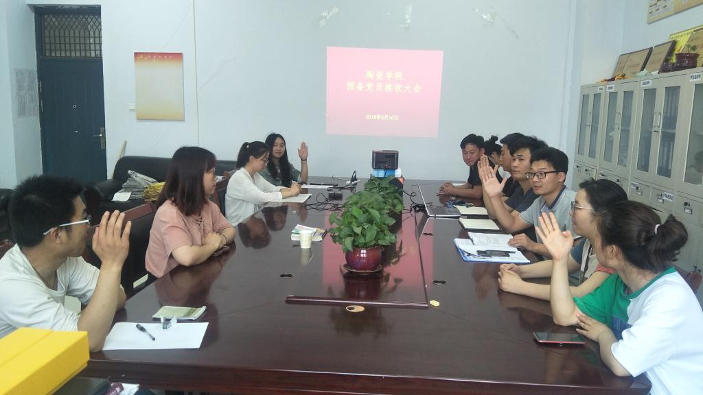 会上,王文宾、韩玉蒙、姚珂珂、魏羽童等四位发展对象围绕对党的认识、入党动机、本人履历、家庭和主要社会关系等方面分别向大会汇报了各自情况。入党介绍人分别介绍了上述发展对象的有关情况,认为四位同志已基本具备预备党员条件,愿意介绍其入党。学生党支部委员会向大会报告了对发展对象的审查情况,与会党员充分发表意见,对四位发展对象能否入党进行深入讨论。接着,根据大会讨论情况,四位发展对象依次谈了自自己的认识和决心。最后,大会以举手表决的方式,经表决,认为王文宾等四位同志已基本具备预备党员条件,同意将王文宾、韩玉蒙、姚珂珂、魏羽童等四位同志接收为中共预备党员。