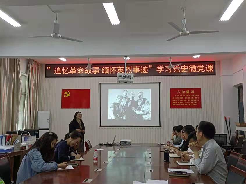为铭记党的光辉历史,传承生生不息的红色精神,以全新风貌迎接党的百年华诞。5月20日下午,太阳集团tyc151cc教工党支部在艺术楼A118开展了“追忆革命故事,缅怀英烈事迹”主题党日活动。本次活动采用微党课比赛的形式进行,教工党支部全体党员参加活动,活动由教工党支部副书记刘晓明主持。