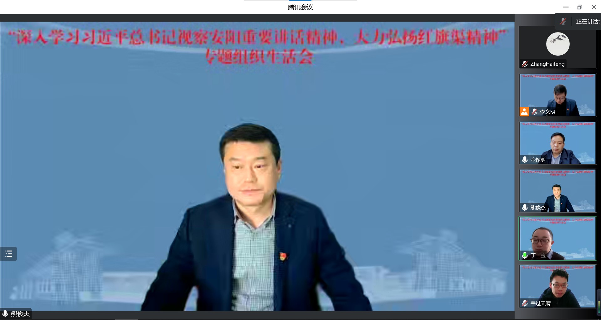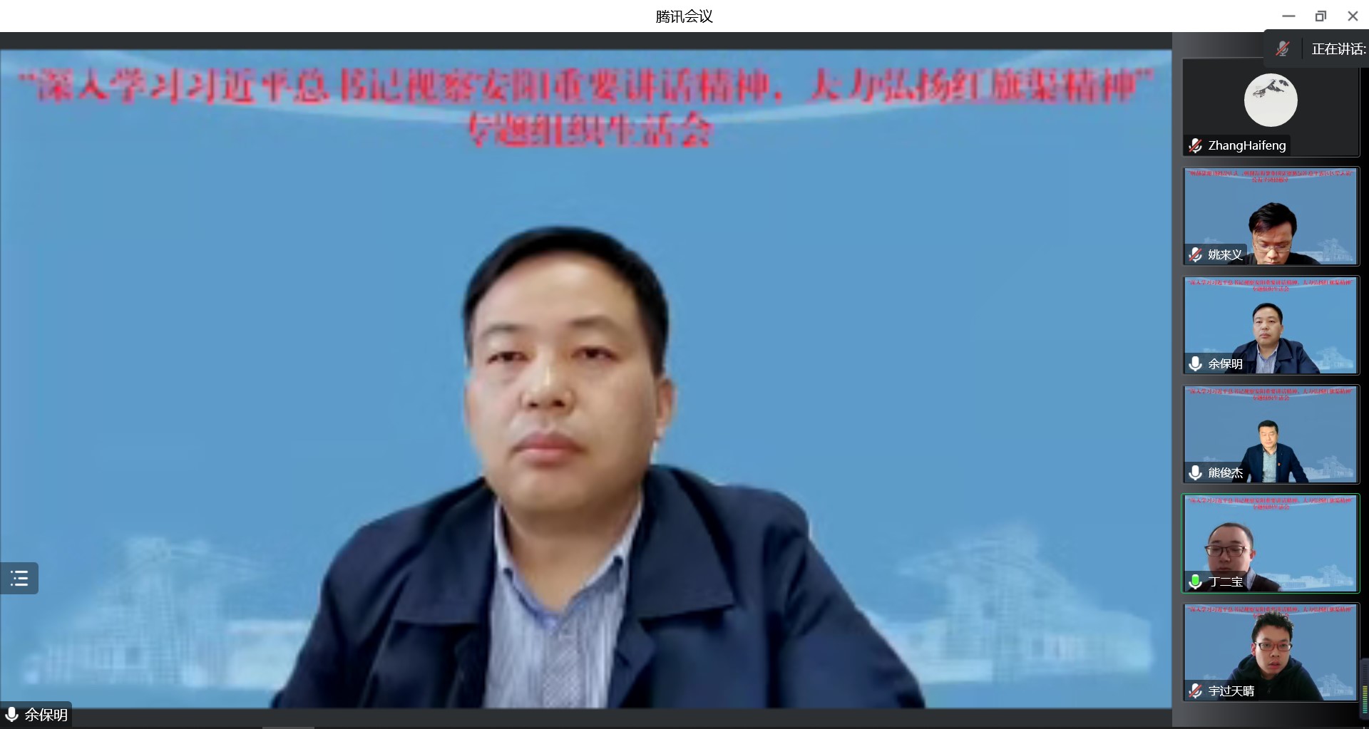 为深入学习贯彻党的二十大精神和习近平总书记视察河南安阳重要讲话精神,11月24日,太阳集团tyc151cc组织全体党员在线上召开“深入学习习近平总书记视察安阳重要讲话精神,大力弘扬红旗渠精神”为主题的专题组织生活会。会前已按照校党委要求,安排全体党员认真观看相关学习视频。会议由党委副书记、教工党支部书记余保明主持。