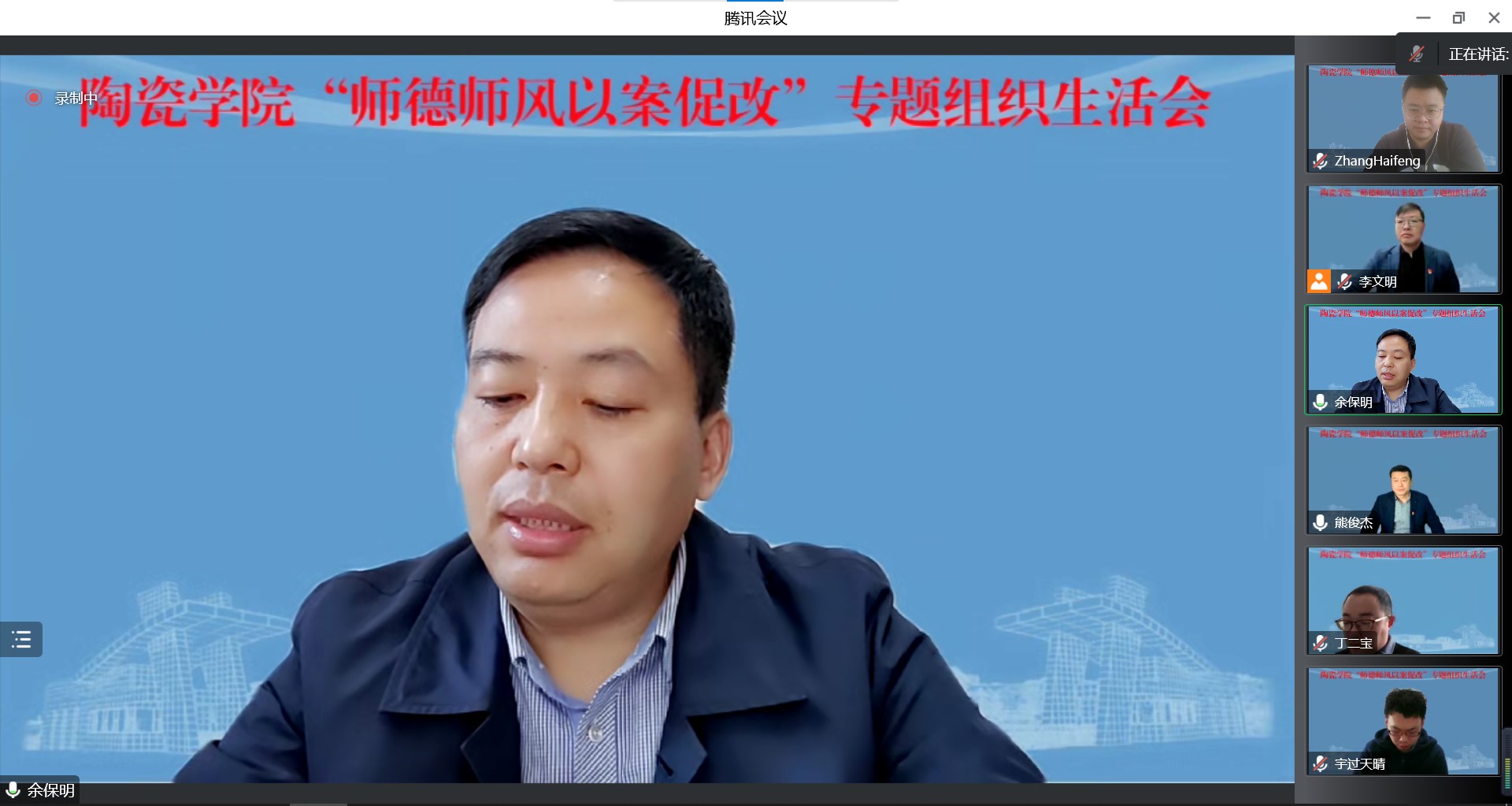 为贯彻落实习近平总书记关于师德师风建设的重要指示精神,推进教师十项行为准则的有效实施,打造一支思想政治素质过硬,职业道德水平高的教师队伍。根据学校工作安排,11月24日下午,太阳集团tyc151cc以线上会议形式召开“师德师风以案促改”专题组织生活会。校工会副主席王福强到会指导。会议由院党委书记熊俊杰主持,全体教职工参加会议。