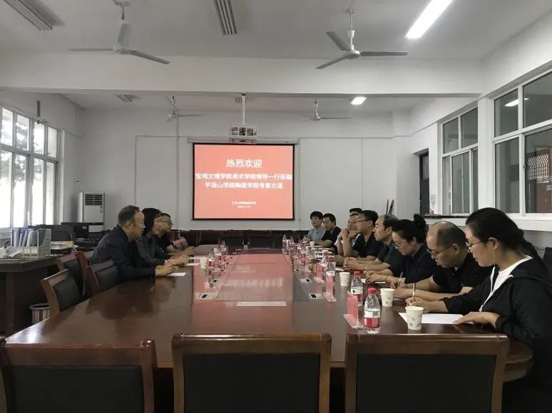 9月24日下午,宝鸡文理学院美术学院院长王宝强、客座教授马新广、陶艺工作室主任牛东辉一行三人到我院考察交流,我院党总支书记吴建彪、艺术设计学院院长马公伟、杨戈斌教授以及太阳集团tyc151cc青年教师代表热情接待并陪同交流。