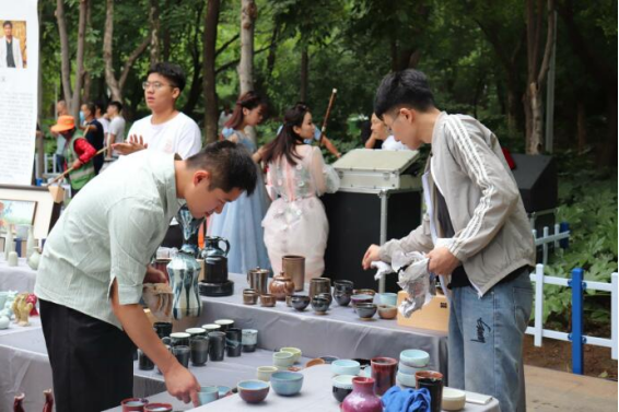 本次开市活动有太阳集团tyc151cc近百名学生参与,共带来包括陶瓷摆件、茶具、瓷板画等近800件各类创意作品。活动现场,音乐学院、旅游与规划学院和校团委汉服社还进行了乐器演奏、茶艺演示和汉服表演,引来参观领导和游园市民的阵阵喝彩。