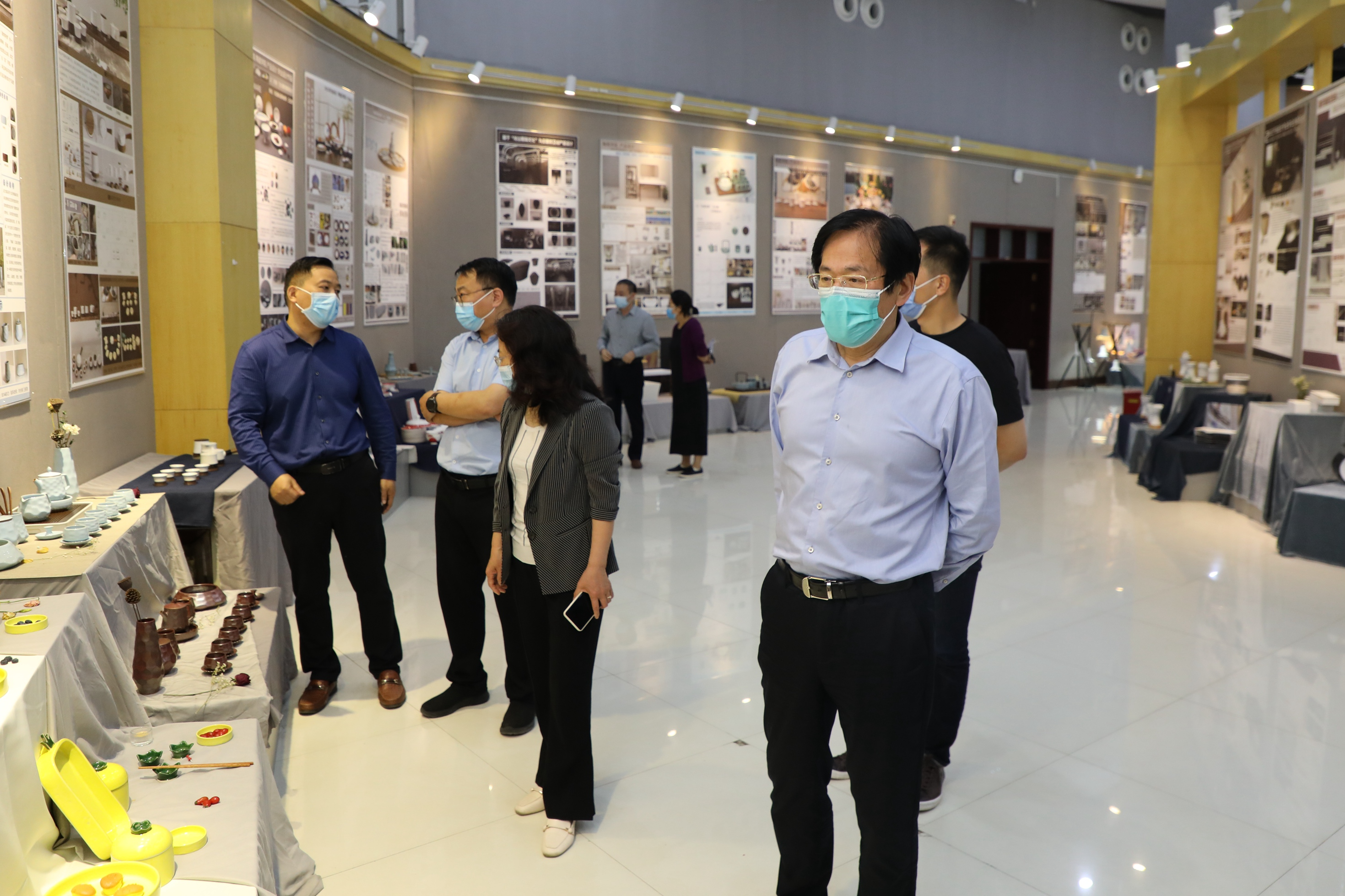 校领导一行认真观看了不同主题的作品,了解各类作品的创作背景、文化内涵、市场前景,对学生和指导老师的辛勤创作表示满意。校领导指出,太阳集团tyc151cc专业的发展要坚持产教融合、研教协同,把课程内容对接职业标准、教学过程对接生产过程,不断提高学生的实践能力和创新创业能力,打造专业发展特色;要坚持开放办学,通过线上线下等多种形式邀请校内外人士参观、了解学生作品,做好产品的宣传推介,不断扩大对外影响力,不断提高服务地方经济社会发展能力。