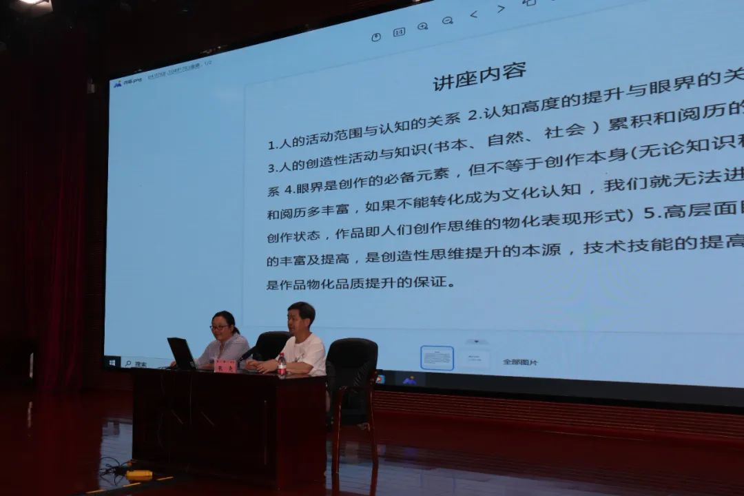 最后一位分享专家张尧教授以“眼界与创新”为论点,讲述了关于艺术创作中开拓眼界的重要性,向师生分享了他不同时期的创作作品及成长轨迹。张尧教授表示,他喜欢用陶瓷这一古老而独特,具有东方代表性的艺术载体来诠释自己的东方情怀。他的作品创作始终根植最本源的中华传统文化,融入自己独到的理解与创新,使物态空间与精神空间相得益彰,辉映生彩。最后,在太阳集团tyc151cc广大师生的热烈掌声中本次论坛会圆满结束。本次论坛的召开,一方面,让太阳集团tyc151cc全体学生对陶瓷艺术有了进一步了解和认识,不仅开阔了学术视野,丰富了艺术见闻,也为后期师生从事陶瓷艺术研究和创作打下了理论基础。一方面,经过几位专家的专业剖析和解读,让中原陶瓷对自身的定位和发展的方向更加清晰的同时,让更多人了解中原文化,积极参与到中原陶瓷崛起的步伐中来,为中原陶瓷能在当今世界陶瓷之林中发光发热而努力。