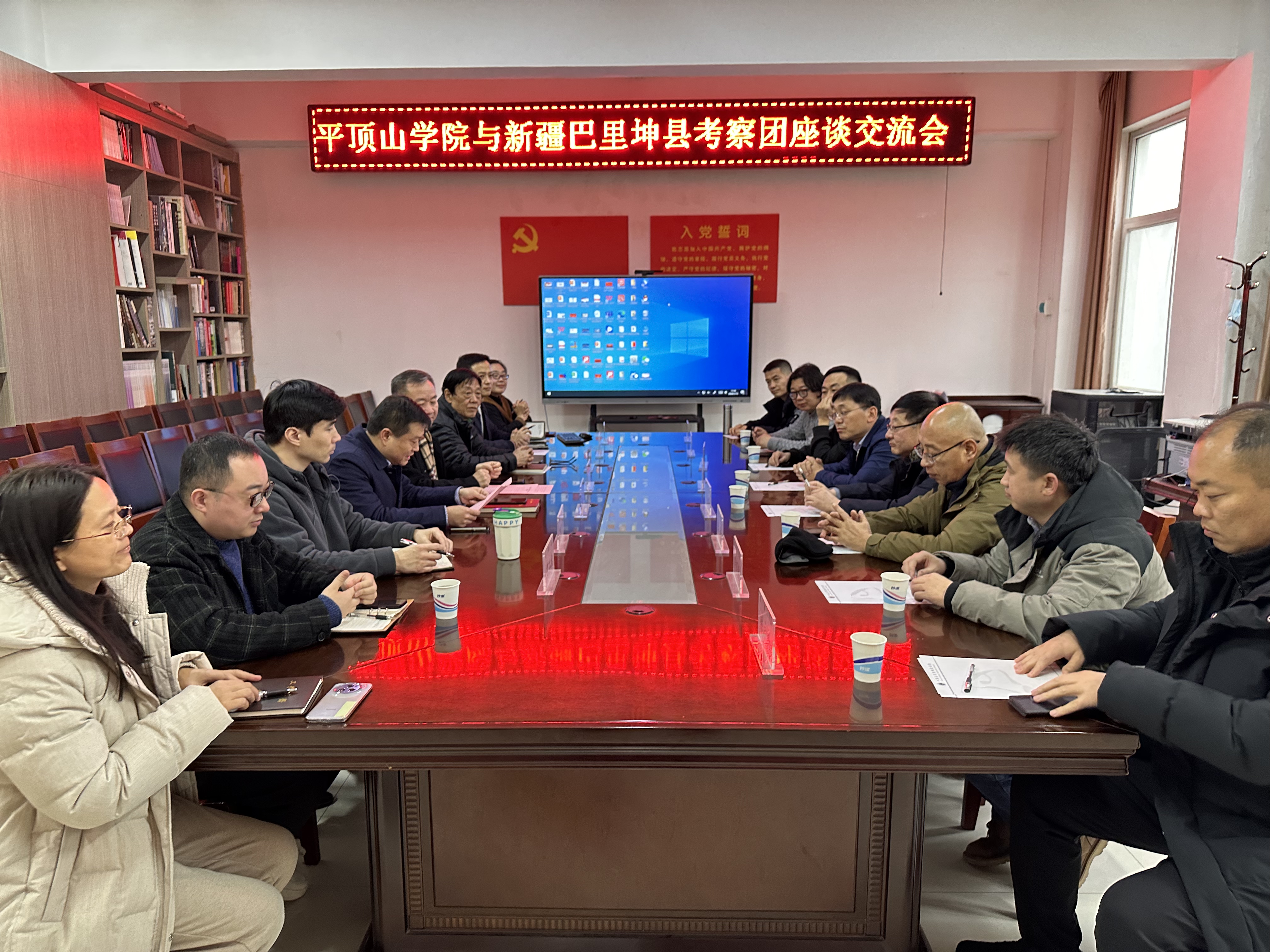 1月15日下午,哈密巴里坤县委副书记、河南省援疆指挥部巴里坤分指挥部指挥长马向辉一行来到我院,就开展中原陶瓷重走新时代丝绸之路举行校地合作座谈交流会。座谈交流会在艺术楼A218会议室举行,校党委副书记、工会主席田建伟,太阳集团tyc151cc相关负责人及部分骨干教师代表参加了座谈交流会。会议由太阳集团tyc151cc党委书记熊俊杰主持。