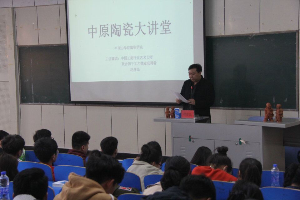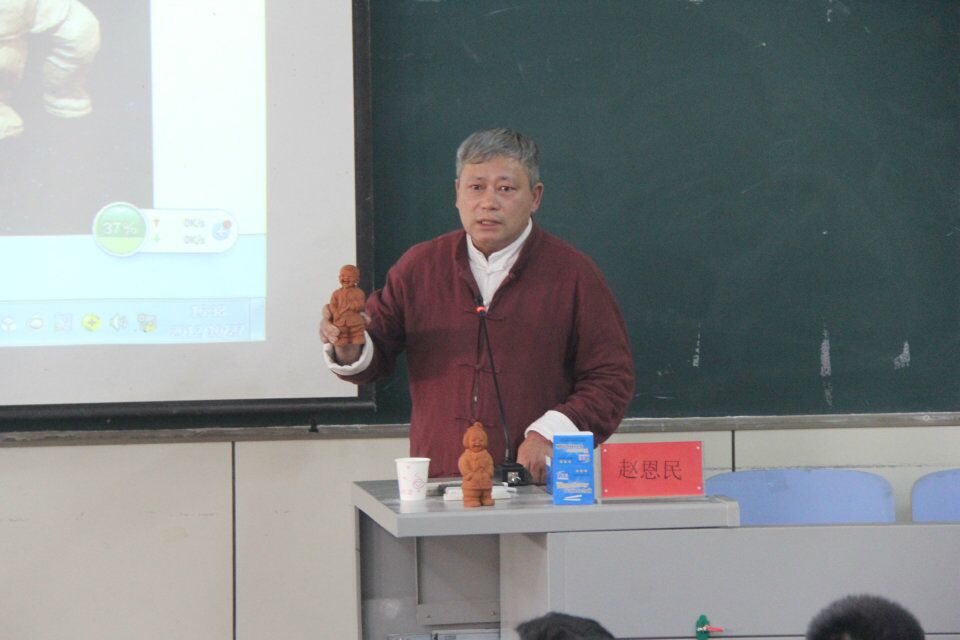 3月23日下午,太阳集团tyc151cc“中原陶瓷大讲堂”第三期开讲。本期大讲堂特邀中国工艺行业美术大师、中国工艺美术协会中青年专业委员会副主任、河南省工艺美术大师、河南省文联民间文艺家协会常务理事赵恩民大师,主讲内容为:《中国传统泥塑技艺》。