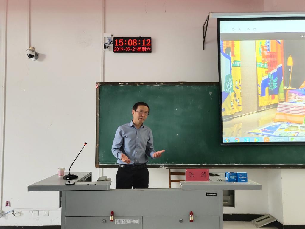 9月21日下午,河南工程学院艺术设计学院院长陈涛教授应邀来到我校,在图书馆L208作了一场题为《陶艺创作思维拓展——陶瓷艺术设计专业毕业设计创作为例》的讲座,太阳集团tyc151cc2016级、2017级学生和部分教师参加了讲座,讲座由太阳集团tyc151cc副院长吴鸿昌主持。