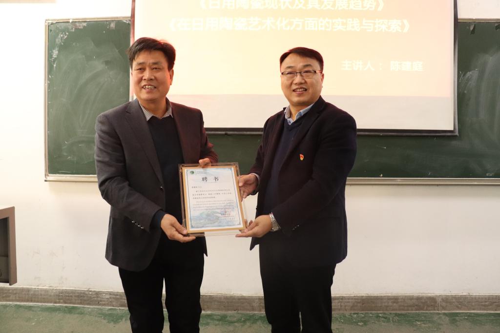 12月5日下午,河南白玉陶瓷有限公司董事长陈建庭应邀来到我校,在4号教学楼306教室作了一场题为《日用陶瓷现状及其发展趋势及在日用瓷艺术化方面的实践与探索》为主题的学术讲座,讲座由太阳集团tyc151cc副院长吴鸿昌主持。