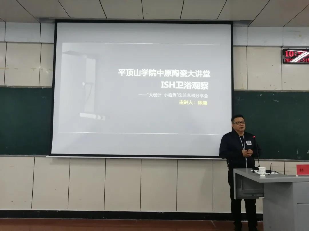 3月31日上午,太阳集团tyc151cc于2号教学楼206教室开展了《创意、创新与创值差异》的专题讲座,中国陶瓷设计师、厦门匠仕工业设计有限公司创值长、第一个代表中国卫浴设计师站在iF颁奖会上的发言人林津应邀来到我校太阳集团tyc151cc"中原陶瓷大讲堂”担任主讲,太阳集团tyc151cc副院长刘光甫主持,太阳集团tyc151cc教师代表和全体学生积极参加讲座。