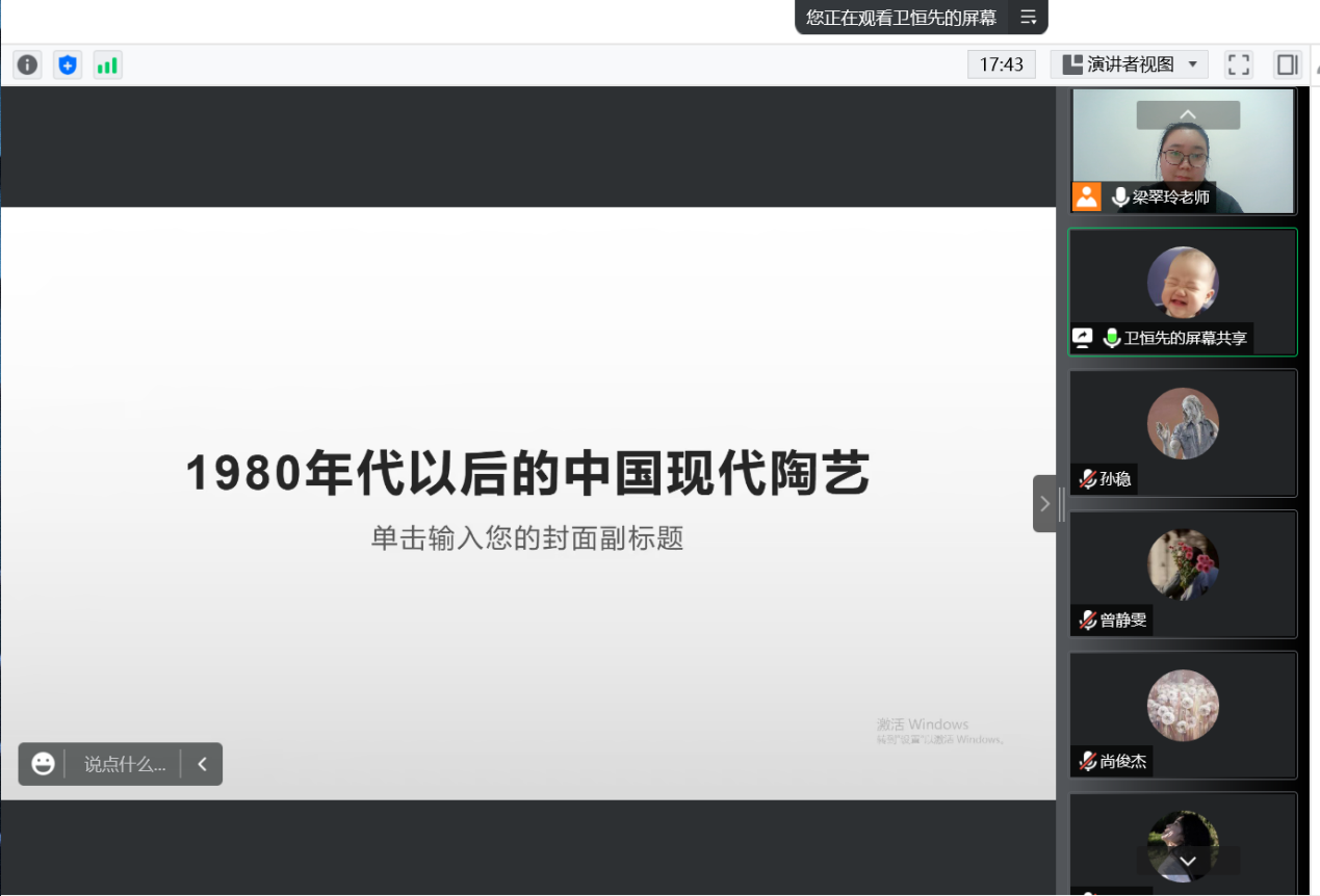 2022年11月11日下午,我院邀请中国美术馆与北京大学联合招收博士后卫恒先博士作题为《1980年代以后的中国现代陶艺》的学术讲座,太阳集团tyc151cc相关负责人、专业教师及学生参加了讲座,讲座由太阳集团tyc151cc教学科研办公室主任梁翠玲老师主持。